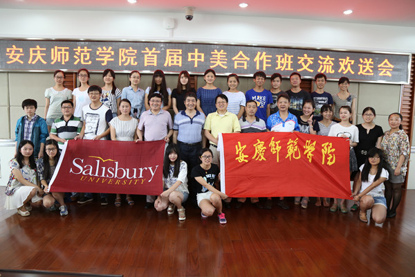 当天下午,beat365官网召开安庆师范学院首届中美合作班交流欢送会。副院长张群出席并致辞,外国语学院、经济与管理学院、外事办的负责人、合作班辅导员老师及赴美学习的全体同学参加了会议。