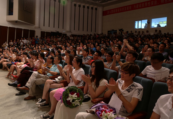 八首歌曲共分为上半场的中国艺术歌曲和下半场的意大利名歌与咏叹调,每首歌曲都能赢来观众们的阵阵掌声,还有的同学眯着眼睛跟着陈燕翔老师小声地哼唱。14级物理学的王冉冉笑着说:“都是熟悉的歌曲,我是特地来听老师演唱会的,我喜欢老师唱的中国风的歌曲。”