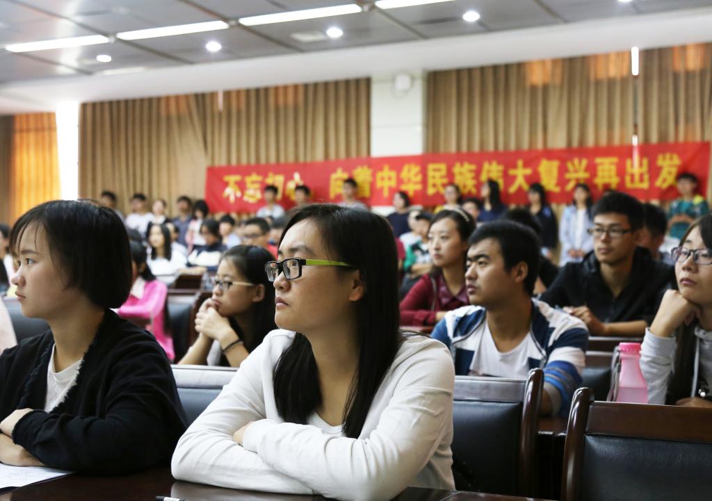 “长征精神是一座巍峨的丰碑。长征的胜利是中国共产党人信念的胜利。”习近平总书记的讲话让数学与应用数学专业的章思婷激动不已,忍不住从座位上站起来,走到电视机前,掏出手机拍下这一幕,“总书记这么激励人心的讲话,我想把它拍下来,与我的同学们一起分享。”