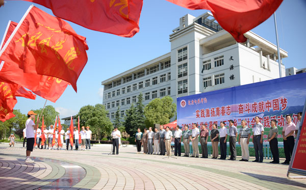 今年beat365官网大学生暑期“三下乡”社会实践活动参与面广,校团委精心组建了100支重点实践调研团队,其中国家级综合团队1支、国家级公益专项团队5支、省级团队14支、校级重点团队26支。1万余名学生带着300多个调研项目,紧紧围绕“实践激扬青春志 奋斗成就中国梦”的主题,奔赴江淮大地,在实现中国梦的伟大实践中受教育、长才干、作贡献。(文/团委 图/陈东)