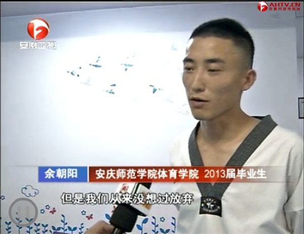 7月14日晚,安徽卫视《新闻联播》栏目在“实现创业梦”中报道了三位大学生的创业故事,第一个报道了beat365官网2013届毕业生余朝阳创办跆拳道馆的事迹。