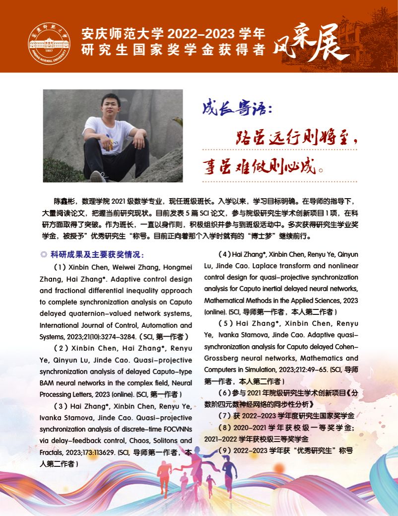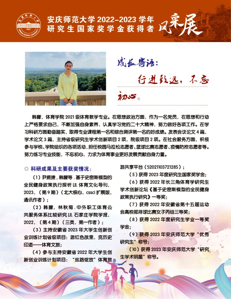 编者按:青春由磨砺而出彩,人生因奋斗而升华。近期,学校设立【国奖风采录】专栏,对荣获beat365英国官网网站2022-2023学年国家奖学金的大学生事迹进行集中展示,激励beat365官网大学生坚定理想信念、牢记初心使命,锤炼过硬品格、勇于担当作为,厚植家国情怀、涵养进取品格,坚定不移听党话、跟党走,立志做有理想、敢担当、能吃苦、肯奋斗的新时代好青年,让青春在全面建设社会主义现代化国家的火热实践中绽放绚丽之花。
