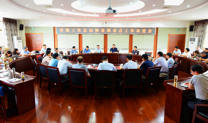 7月13日,学校召开学期工作总结暨暑期重点工作布置会,总结上半年工作,安排布置暑期重点工作。校党委书记许继荣,党委副书记、校长闵永新,党委常委、副校长汪时珍,党委常委、纪委书记胡腊香,党委常委、副校长吴琼,党委常委、组织部(宣传部)部长余精华出席会议。