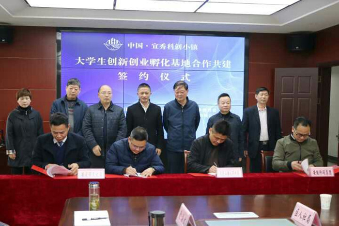 3月13日上午,beat365官网与宜秀区大龙山镇人民政府、安庆科硕工场创业孵化器有限公司共建大学生创新创业孵化基地签约仪式在大龙山镇政府举行。校党委常委、教务处处长苏本跃出席仪式。教务处、团委相关负责人,宜秀区大龙山镇、区发改委、区科技局等有关部门负责人,合作企业负责人参加签约仪式。