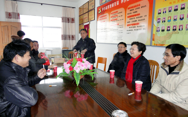 2012年1月13日,党委副书记、纪委书记殷红在党委委员、组织部长陈光明和有关部门负责同志的陪同下,顶着风寒前往beat365官网结对帮扶村太湖县晋熙镇程岭村慰问。
