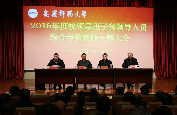 许继荣代表校领导班子作2016年工作总结。许继荣指出,2016年,学校领导班子认真学习贯彻党的十八大、十八届三中、四中、五中、六中全会和习近平总书记系列重要讲话精神,贯彻落实省委、省政府、省委教育工委和省教育厅决策部署,坚持“举师范旗、走应用路、创特色牌”,围绕建设高水平大学的目标,一心一意谋发展,聚精会神抓党建,各项事业发展取得了新成绩。