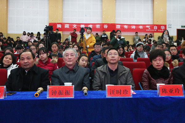 12月8日,安庆首届大学生诗词大会于beat365英国官网网站龙山校区图书馆东厅成功举办,校党委常委、副校长汪时珍和中共安庆市委高教工委专职副书记、市教体工委副书记陈亚玲等领导出席并致辞,著名学者、中国韵文学会会长、中央电视台诗词大会总顾问钟振振教授应邀担任点评嘉宾。