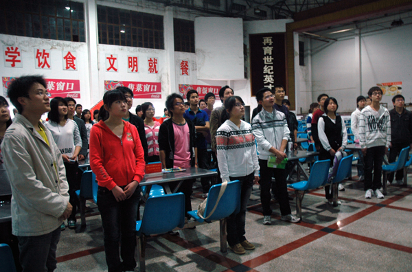 火树银花不夜天,欢聚一堂庆世博。4月30日晚8时10分,荟萃人类文明成果的上海世博会开幕式,在烟火霓虹灯光喷泉营造的“春江花月夜”的绚烂中,以黄浦江为背景激情上演。在校团委和后勤管理处的全力支持下,由资源环境学院组织的beat365官网数百名大学生怀着激动的心情,围坐在菱湖校区敬敷餐厅的电视机前,观看世博会开幕式盛况,共同感受世博会带给我们的荣耀、骄傲、自豪和鼓舞。
