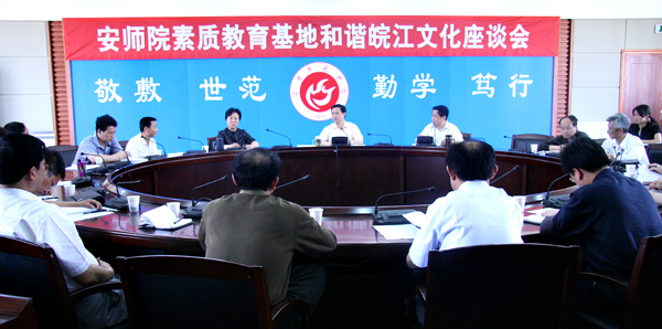 5月20日下午,国家大学生文化素质教育基地在龙山校区行政楼二楼报告厅召开和谐皖江文化座谈会。院长汪青松、副院长王海燕出席会议,基地六个工作部有关负责人、皖江文化中心负责人、基地办全体人员参加了会议。会议由基地办公室主任张国定教授主持。
