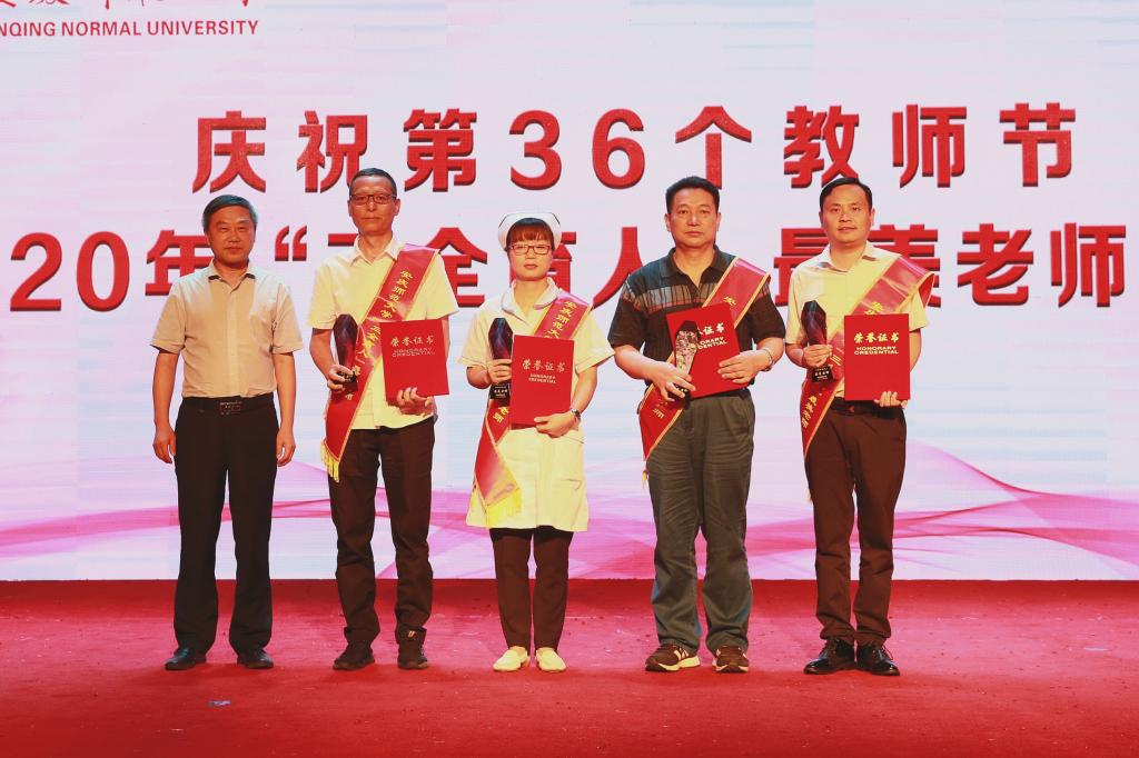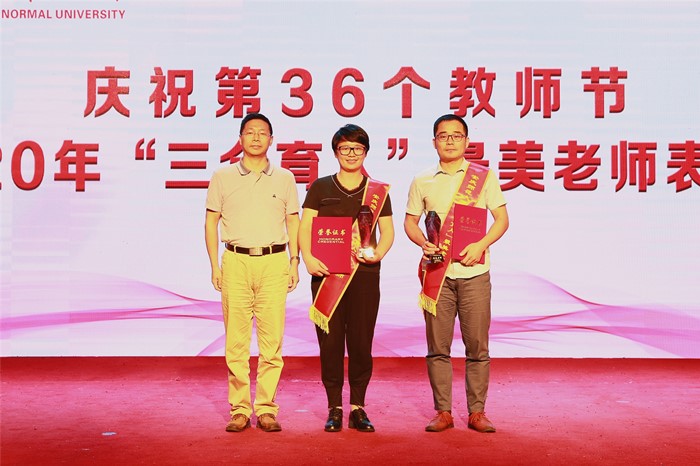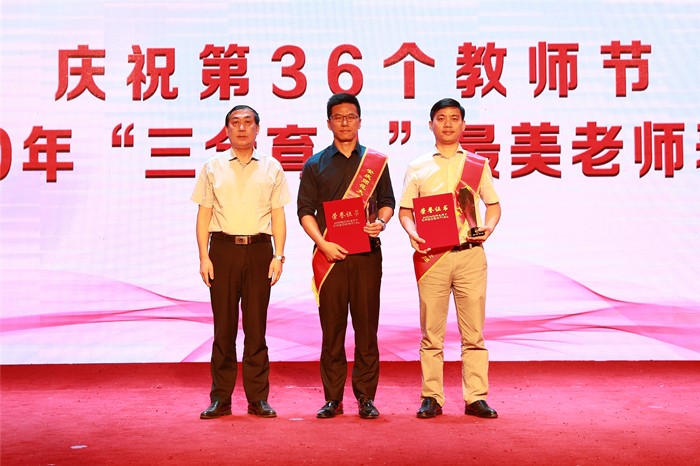 校党政领导为所有获奖教师和教育工作者颁发奖杯和荣誉证书。会场一片庄重神圣,时时响起的热烈掌声是对优秀教师和教育工作者的认可和赞赏。