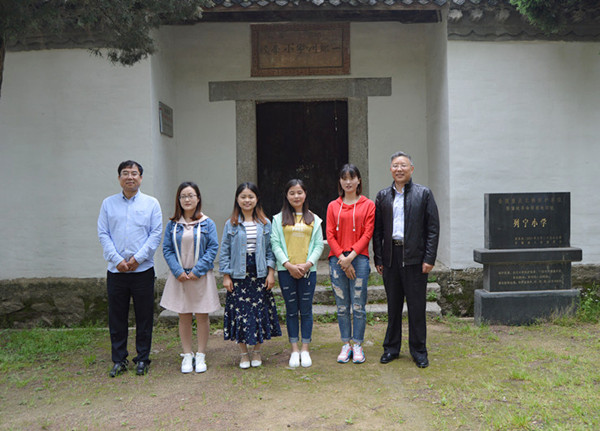 5月15日上午,闵永新一行驱车4个多小时,到达金寨县汤家汇镇,在金寨县委常委、宣传部长江勇,金寨县教育局局长徐浩,汤家汇镇党委书记邵先成等陪同下,前往金寨县列宁小学、汤家汇镇泗河实验学校小学部和初中部,看望正在这三所学校顶岗支教的储玮圆、李倩倩、汪婷、黄冬霞、邓鑫鑫、黄顺霞、冯萍等7名同学,询问她们的学习和生活感受,并向当地学校负责人了解实习效果和安全保障等情况。期间,闵永新和同学们一道,参观了爱国主义教育基地、国家级文物保护单位——列宁小学的旧址,并就红色文化研究、更好地在红色土地上接受教育并发挥大学生的作用与大家进行了交流。