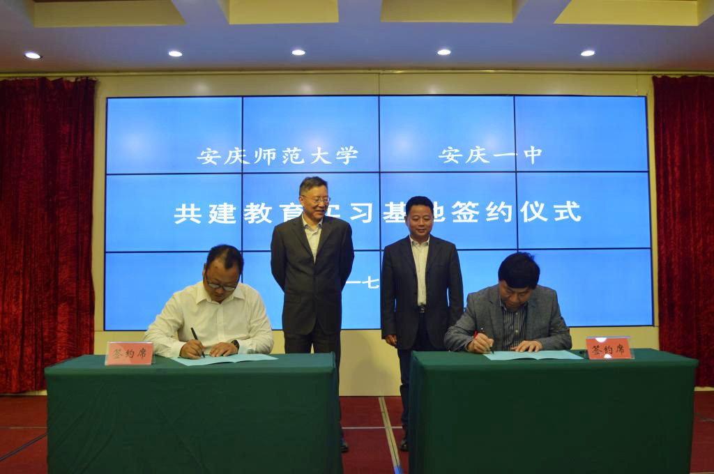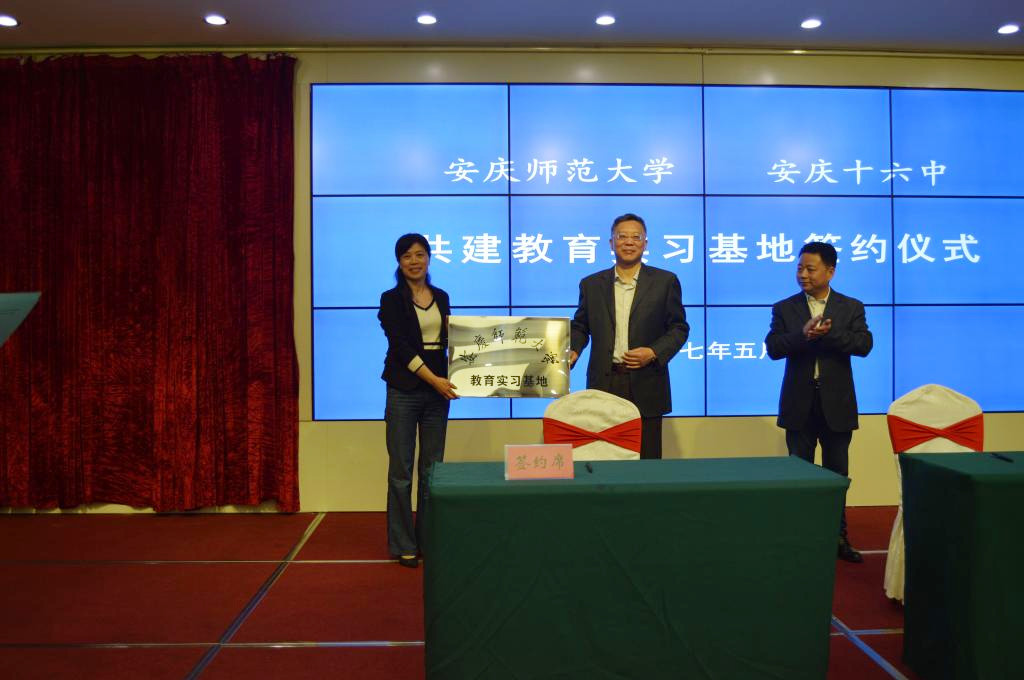 签约仪式上,安庆一中、安庆二中、安庆石化一中、安庆七中、安庆十中、安庆九中、安庆四中、安庆十一中、安庆广圩中学、安庆十四中、安庆十六中、安庆绿地实验学校、安庆开发区实验学校、安庆白泽湖中学、安庆大龙山初中、安庆健康路小学、安庆石化三小、安庆十里中心学校、太湖朴初中学、潜山双峰初中、潜山三环高中、枞阳花园初中依次与beat365官网签订共建beat365英国官网网站教育实习基地协议,并从校长闵永新手中接过教育实习基地牌匾。