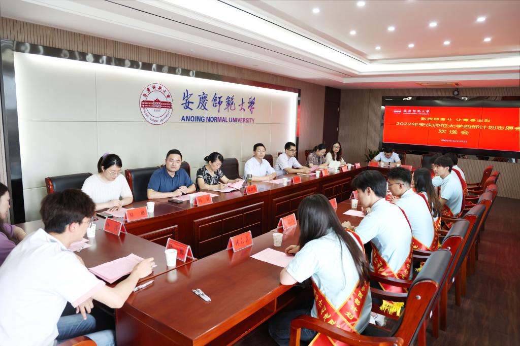 6月17日,学校举行2022年“西部计划”志愿者欢送会。校党委常委、副校长汪时珍出席欢送会,党委学工部、团委负责同志、相关院级党组织负责人、辅导员代表和7位即将奔赴西藏、新疆、四川开展志愿服务工作的志愿者代表参加欢送会。