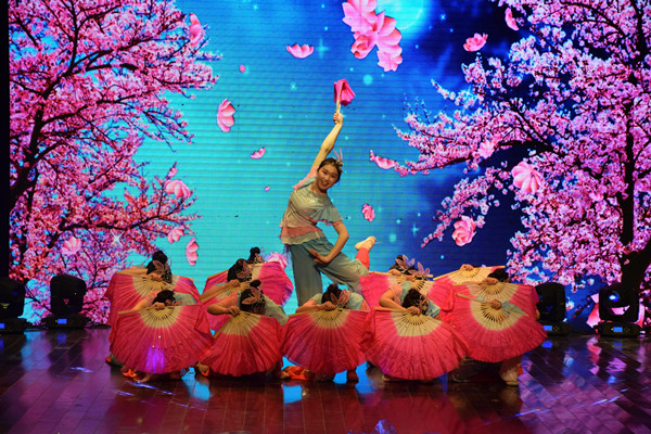 笑逐颜开多欢乐,精彩纷呈齐喝彩。音乐黄梅剧艺术学院同学带来的器乐合奏《喜洋洋》拉开了晚会的序幕,欢快的旋律瞬间点燃了现场观众的热情,演奏行云流水、一气呵成。青春、活力与激情在体育学院选送的健美操《竞技的巨人》中展现得淋漓尽致,高难度的翻转与默契的配合引得现场观众连连喝彩、掌声雷动。“海浪无声,将夜幕深深淹没……”空灵的歌声缓缓传来,身着红色水袖长裙的舞者,踩着轻缓的步伐在台上婆娑起舞,歌伴舞《大鱼海棠》中婉转缠绵的歌声与柔美灵动的身段相互配合,扣人心弦。