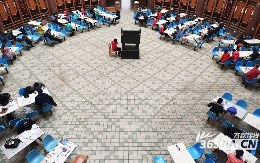 2014年1月3日,全国硕士研究生入学考试前一天。安庆师范学院学院龙山校区图书馆里仍有许多考生在作最后的复习。(陈东摄影)