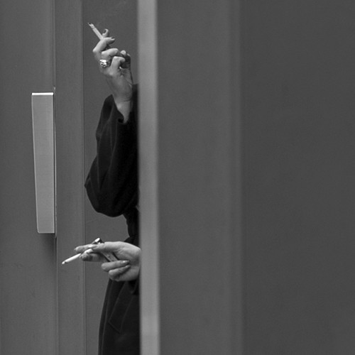 这张照片拍摄于2015年的11月,当时史阳琨在伦敦街头“扫街”,已经走了一天的他准备坐公交回家。忽然间,他看到街角的墙边露出了两只朝外的手,手上还分别夹着一支烟。“是本能触发了快门,当时并没有想太多,这可能也是街头的魅力吧。”他说,“因为英国室内禁烟,所以伦敦街头总是会看到人们站在门口抽烟的情景。抽烟可能是一个人忙碌的一天中最放松的间隙,我非常喜欢观察他们抽烟时的样子,好像每天都有一千个故事伫立在街头。”