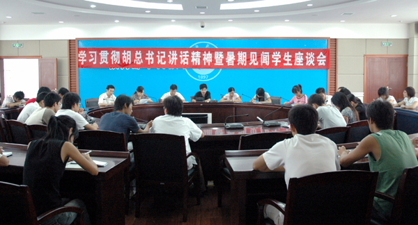 为了进一步认真学习贯彻胡总书记在全国优秀教师座谈会上的讲话精神,同时更深入地了解同学们的暑期生活和思想动态,及时反馈信息,有针对性做好新学期的各项工作,9月7日下午,校团委组织召开了学习胡总书记讲话精神暨暑期见闻学生座谈会。校学生会、各院系学生代表和暑期大学生社会实践代表等三十多人参加了座谈。