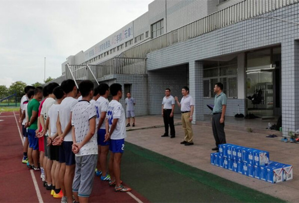 8月3日,副校长、校体艺委主任、校足球领导小组组长张群在体育学院党政领导的陪同下,冒着酷暑,来到学校体育场,看望并慰问了正在紧张训练中的校足球队全体师生。