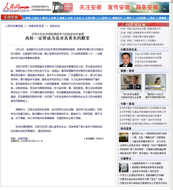 上一篇:安徽教育网:王明方在安庆师院调研时强调 高校一定要成为真善美的殿堂