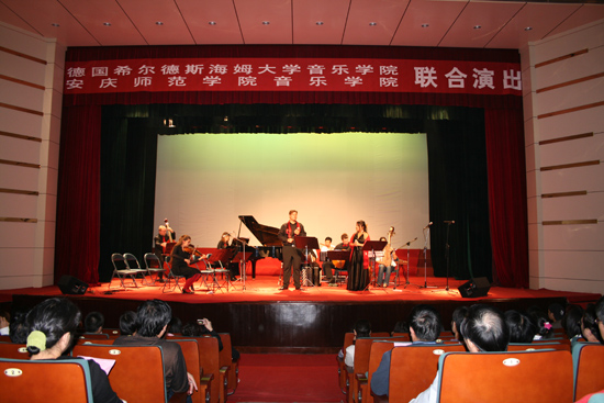 10月12日晚上七点,德国希尔德斯海姆大学音乐学院与beat365官网音乐学院在音乐厅进行联合演出。党委书记赵晓和,党委委员、副院长时新中,党委委员、纪委书记殷红亲临音乐厅观看演出。部分职能部门的负责同志陪同观看了演出。