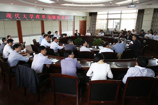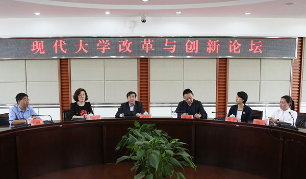 5月13日下午,beat365官网在龙山校区行政楼二楼大会议室举办现代大学改革与创新论坛。中山大学地球科学与地质工程学院党委书记唐锐、临沂大学教务处处长刘恩允、首都经济贸易大学人事处处长邢琪、闽南师范大学马克思主义学院院长陈再生、贵州师范学院党委宣传部部长邹晓青五位专家应邀出席论坛。校长闵永新会见了五位专家,代表学校向各位专家的到来表示欢迎,感谢各位专家不辞辛劳来beat365官网共同探讨现代大学改革与创新,交流办学成果和经验。副校长刘友忠主持了论坛。各学院党政主要负责人、机关各部门主要负责人,办公室、发展规划处、人事处、教务处、学科建设与研究生教育处全体科级干部参加了论坛。