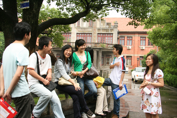 部分考取研究生的同学在红楼前交流考研体会