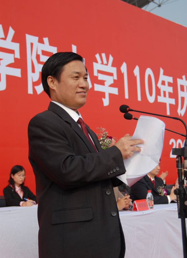 党委书记赵晓和主持庆典大会。他指出,长期以来,安庆师范学院得到了各级领导、各位专家、社会各界的关心和大力支持。校庆期间,教育部、省委、省政府给学校发来贺信、贺电,省委书记王金山同志、省长王三运同志给学校办学庆典亲笔题词。今天,安徽省人民政府副省长谢广祥同志、省政协副主席赵韩同志、教育部师范司副司长宋永刚同志又亲临学校指导,对beat365官网办学成就予以充分肯定,对学校的建设和发展寄予殷切期望,全校师生员工深受鼓舞。在校庆期间,我们非常荣幸地承办了第二届教师教育国际研讨会,迎来了参加研讨会的国内外专家,提升了beat365官网校庆的品位。各位领导和嘉宾的光临与祝贺,是对我们的极大鼓励和鞭策。我们一定认真学习贯彻上级领导的讲话精神,以110年办学庆典为契机,继续发扬百年办学传统,深入贯彻落实科学发展观,解放思想,与时俱进,求真务实,改革创新,努力在人才培养、科学研究和社会服务等方面不断取得新成绩,实现新突破,为把安庆师范学院早日建成省内有地位、国内有影响的教学研究型大学而努力奋斗!