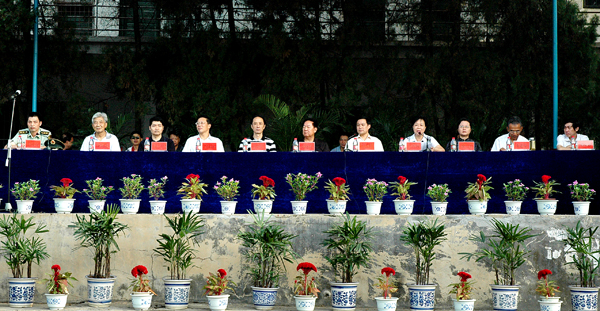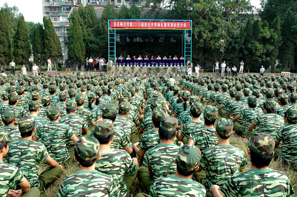 校迎新工作领导小组和军训工作领导小组全体成员、各院系新生班级辅导员及2008级6000余名新同学参加了开学典礼和军训动员大会。开学典礼及军训动员大会结束后,六千余名新生立即投入到紧张的军训当中。(文/院办 图/宣传部)