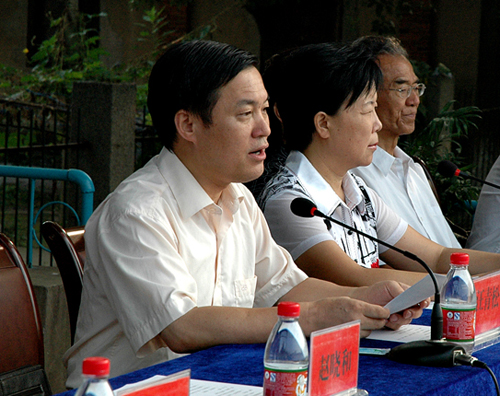 武警安庆支队副支队长胡庆南对全体军训教官和参训同学作了军训动员;教师代表、外国语学院院长郝涂根教授、化学化工学院院长吴根华教授以及新生代表、曾获“全国十佳春蕾女童”称号、化学化工学院查淑娴同学和来自四川汶川地震灾区的计算机与信息学院胡盼同学也分别在开学典礼上作了发言。