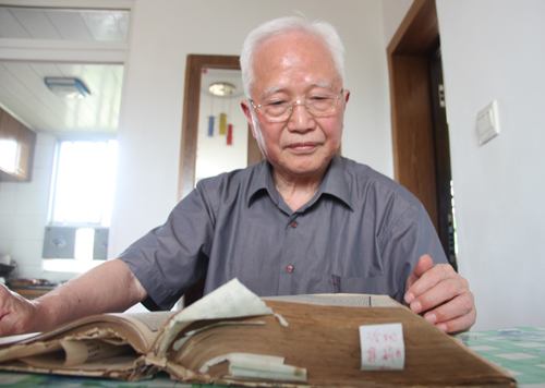 石老看书有一个习惯,那就是做读书札记,给看过的书做批注。这个习惯,他在上个世纪五十年代就养成了,到目前他已经写了三十四本读书札记,并且为每一本都做了编号。石老还特地向记者展示了他的“宝贝”——一本封皮脱落、纸页泛黄的《十三经注疏》,上面密密麻麻地写满了注记。“看书嘛,边看边记,才有效果,看书跟写字是相互促进的,现在的年轻人因为有了电脑,写字越来越少了,真不是一件好事,汉字很有魅力,不能丢掉。我希望现在的学生们能够多读书,多写字,多关注传统文化,古典文学。”