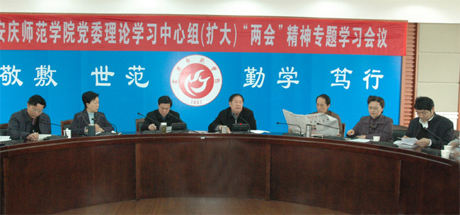 3月27日下午,校党委理论学习中心组在龙山校区行政楼二楼会议室召开扩大会议,专题学习“两会”精神。校领导赵晓和、汪青松、时新中、王海燕、殷红、闵永新、张群等出席,各党总支、直属党支部书记参加了学习。