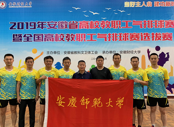 6月15日至16日,由安徽省教科文卫体工会主办的2019年安徽省高校教职工气排球赛暨全国高校教职工气排球选拔赛在安徽财经大学举行,来自全省高校系统的12支(男、女各6支)代表队参加了本次比赛。beat365官网男排经过选拔,代表皖南片区参加比赛,最终获得优秀奖。
