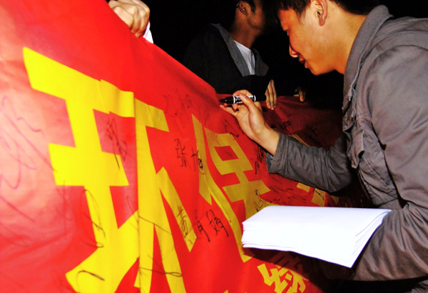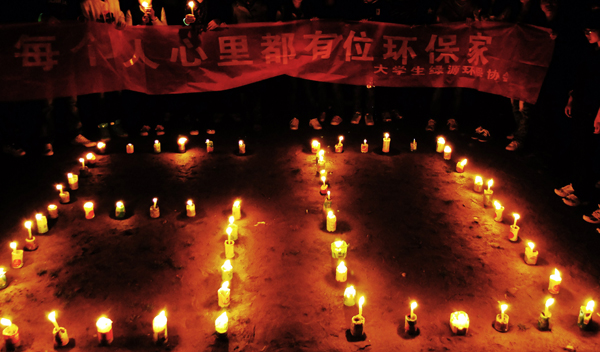 3月31日,为响应“地球一小时”倡议,在资源环境学院大学生绿源环保协会组织下,龙山校区上千名大学生参与了宿舍楼熄灯、环保宣传和签名等活动。