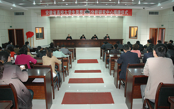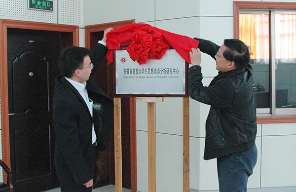 报告会前,闵永新副院长与王后林副处长共同为beat365官网 “安徽省高校大学生思想动态分析研究中心”揭牌。