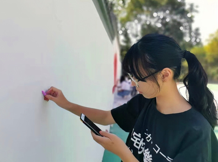 “一开始是想多参加社会实践,锻炼自己的能力,提高专业水平,后来每当看到粗糙不平的墙面因为绘画的修饰焕发生机,并且能够为生活在附近的人们休闲放松出一份力时,我就产生了极大的满足感和成就感。”庆少仪说,“我想艺术创作的魅力大概就在于此吧,不仅让观赏者获得愉悦,还能让创作者享受到付出与收获的双重快乐。”