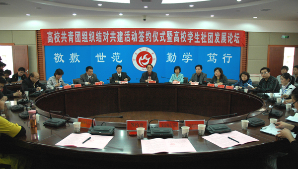 签约仪式结束后,开展了结对共建工作的首场活动:“高校学生社团发展论坛”。三所院校学生社团主管部门的工作人员、学生社团管理中心成员和学生社团代表进行了交流和讨论,气氛热烈、内容丰富、特色鲜明,同学们都觉得受益匪浅,相互约定了网上交流和个别交流的方式。论坛一致认为,要将建立安庆地区大学生社团联合会、开展安庆市大学生社团文化节作为共建的近期目标。(文/刘燕 图/陈广)