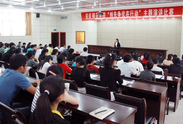 5月5日下午,由校党委组织部主办的“创先争优在行动”主题演讲比赛在龙山校区隆重举行,来自15个学院的学生选手慷慨陈词,他们是由各学院推选的优秀学生党员或入党积极分子。校领导时新中、殷红亲临赛场,并为教工组和学生组的获奖选手颁奖。全校15个学院领导、师生代表观摩了比赛。本次演讲比赛旨在深入开展创先争优活动,以实际行动迎接建党90周年。