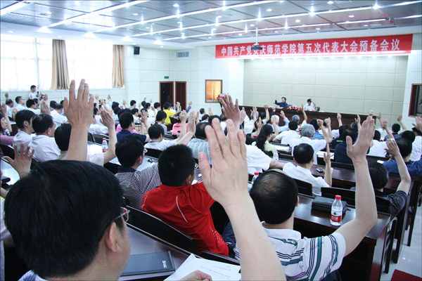 会前,大会还召开了党总支书记会议,通报了第五次党代会代表团划分、召集人名单和活动地点,大会议程和日程以及大会主席团成员和秘书长建议名单等有关工作。八个代表团分别举行第一次会议,推荐了代表团团长、副团长;酝酿了《大会议程》、大会主席团成员和秘书长建议名单;学习了《大会须知》。校领导何小祥、朱士群、时新中、殷红、闵永新、张群、汪时珍等集体到各代表团看望了党代表。(陈东)