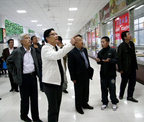 10月14日下午,检查组成员淮南师范学院副院长杨正清、合肥工业大学后勤集团总经理李峰、安徽农业大学总务处长张久辉、安徽建工学院曹春阳、皖南医学院总务处李长久等一行,一下车就来到学生食堂检查工作。在党委委员、副院长闵永新和后勤管理处、学生处、团委、后勤集团、安苑公司负责同志的陪同下,检查组仔细查看了beat365官网学生食堂消毒柜、冷库、加工间、荤菜配切间等场所,详细询问了食品留样、采购、索证、储存、价格等方面情况,并随即向学生进行访谈。当晚,党委书记何小祥前往检查组住地亲切看望检查组全体成员。