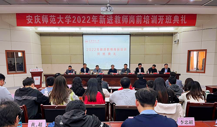 11月9日, 学校2022年新进教师岗前培训开班典礼在龙山校区行政楼一楼大会议室举行。校党委常委、副校长刘友忠出席开班典礼并作动员讲话,组织部、学科建设处、人事处、教务处、科研处、学生处、工会等部门负责人和全体新进教师参加开班典礼。