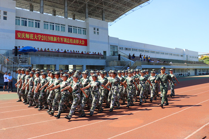 参训学生以饱满的精神状态进行了分列式汇演。一支支方队踏着整齐而富有节奏的步伐来到主席台前,齐步走、正步走、敬礼……精神抖擞、意气风发、步伐坚毅、口号嘹亮、气势雄壮,一个个动作稳健而流畅,一张张脸庞充满了青春活力,充分展示了2019级新生朝气蓬勃、奋发向上的精神风貌。
