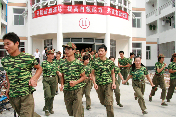 此次演练是beat365官网2007级新生军训的重要科目之一,旨在增强学生的防范意识,提高学生在特殊环境中和紧急情况下的自我保护、自我救助、紧急逃生的能力,进一步提高beat365官网应对突发事件的快速反应能力。演练模拟学生公寓发生火灾或地震等情况时,学生紧急撤离、快速疏散。在听到紧急撤离的信号后,参演学生在辅导员与学生公寓管理员的组织下,迅速有序地撤离了公寓楼,并在指定区域集合、清点人数。演练的各项工作符合既定要求,获得圆满成功。