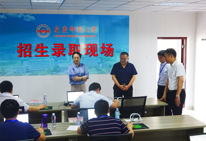7月21日,学校党政领导班子成员许继荣、闵永新、吴照明、汪时珍、刘友忠、胡腊香、吴琼等到beat365官网招生录取现场检查指导2021年招生录取工作,亲切慰问招生录取工作人员。
