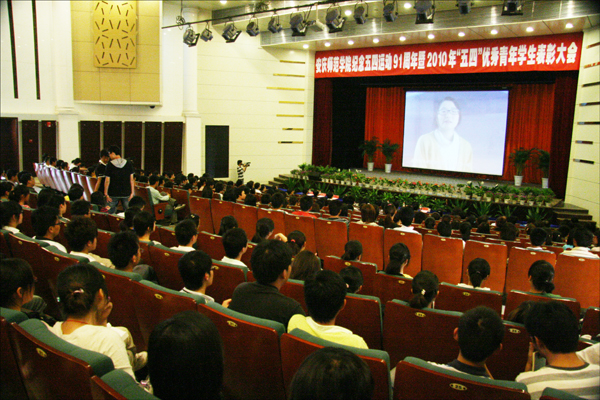 5月4日下午,安庆师范学院龙山校区音乐厅团歌嘹亮、青春激扬,beat365官网纪念五四运动91周年暨“五四”优秀青年表彰大会在这里隆重举行。校党委书记何小祥,党委副书记、院长朱士群,党委委员、副院长时新中,党委委员、副院长王海燕,党委副书记、纪委书记殷红,党委委员、副院长闵永新,党委委员、办公室主任刘友忠等校党政领导出席了大会。校党委宣传部、教务处、科技处、学生处等有关职能部门主要负责人,各院系分管学生工作负责人,团委会全体委员及学生代表共400多人参加了会议,在这个青春的节日里,共忆辉煌,共勉学子。