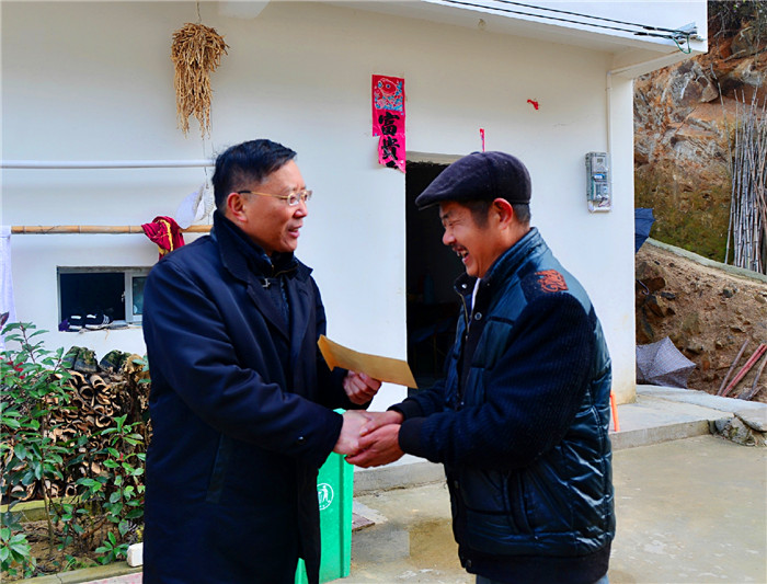 1月19日,校党委书记许继荣,党委副书记、校长闵永新,党委常委、副校长刘友忠在办公室、组织部和宣传部等职能部门负责人陪同下,赴beat365官网定点帮扶单位太湖县天华镇西冲村,调研脱贫攻坚工作并走访慰问困难群众。太湖县政府县长朱小兵和天华镇党委主要负责人陪同参加。