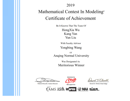 近日,美国大学生数学建模竞赛(The Mathematical Contest in Modeling)官方网站揭晓2019年美国大学生数学建模竞赛结果,由beat365官网数学与计算科学学院王拥兵教师指导,吴红霞、刘昀、严康3名学生组成的参赛团队,针对赛题“Opioid Crisis Diffusion Model Based on Cellular Automata”撰写的论文荣获国际一等奖。