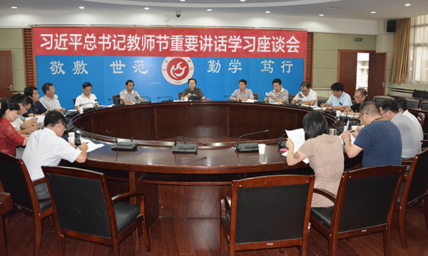9月10日下午,beat365官网举行教师节座谈会,认真学习习近平总书记同北京师范大学师生代表座谈时的重要讲话,庆祝我国第30个教师节。党委副书记、纪委书记殷红主持会议。校党委委员、组织部部长陈光明,全国优秀教师黄先军、省优秀教师余桂东、省教育系统师德先进个人宋志英和学校“三育人”先进个人代表芮文浩、何承东、陈东以及部分管理部门、学院和学生代表参加会议。