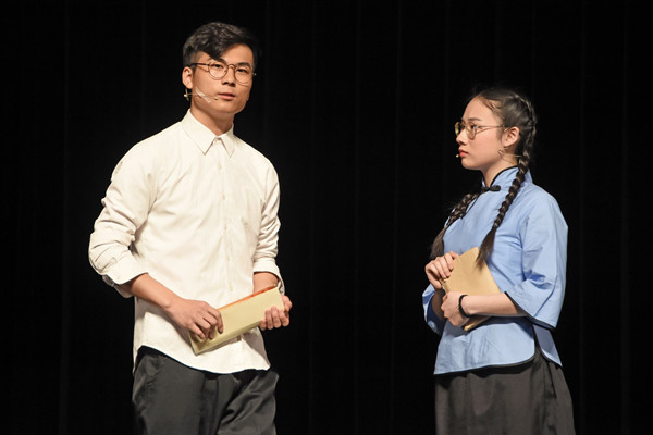 汉语言文学专业2016(3)班的汤科在剧中饰演“王步文”这一角色,“登台表演和排练的次数早已数不清了,从大一下学期表演话剧开始,一年半走来,充满着艰辛和困难,如今在全国的舞台上表演,深知是一种荣幸,也感到是传递爱党爱国情怀的一份责任。”