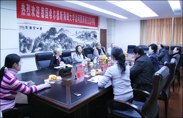 副院长王海燕代表学校热情接待了德国访问团一行,并召开了合作交流会。会议由外事办副主任陈秀同志主持,黄梅剧艺术学院、音乐学院、外国语学院等单位负责同志参加了会议。王海燕副院长表示,在去年赴德访问时,希尔德斯海姆大学给beat365官网访问团留下了深刻的印象。访问团回国后,beat365官网不仅向希尔德斯海姆大学的世界音乐中心捐赠了中国传统民族乐器,而且在校内举办了专题讲座,向beat365官网师生详细介绍了德国的高等教育,讲座受到了师生的热烈欢迎。此外,王海燕副院长还向德国访问团介绍了beat365官网近期的发展情况,并提出了下一步的具体合作建议。