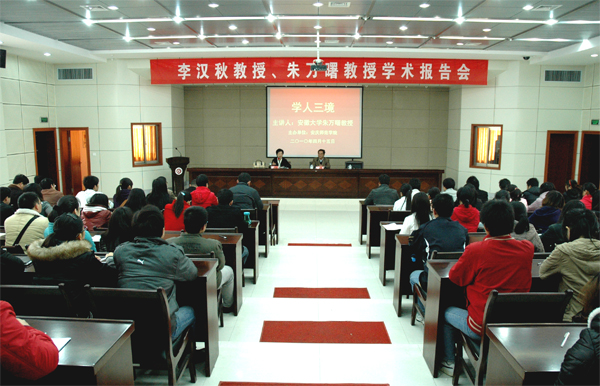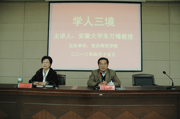 4月15日下午,安徽大学文学院院长、教育部人文社会科学重点研究基地安徽大学徽学研究中心主任朱万曙教授来校,为beat365官网近200名青年教师以及在校研究生代表做了一场以“学人三境”为主题的学术报告会。校党委副书记、院长朱士群,副院长王海燕,出席了报告会。报告会由副院长王海燕主持。